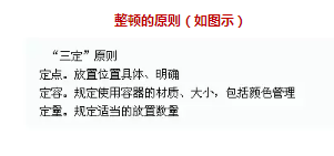 整頓活動(dòng)的目是:工作場(chǎng)所整潔明了,一目了然,減少取放物品的時(shí)間,提高工作效率,保持井井有條的工作秩序區(qū)。