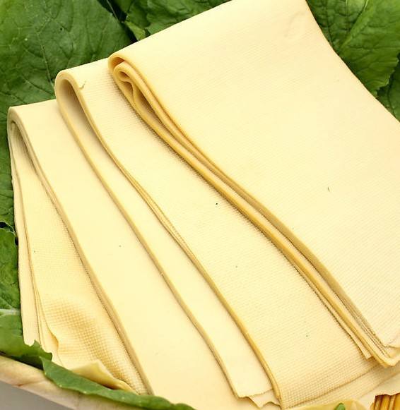 優質豆腐皮皮薄透明,半圓而不破,黃色有光澤,柔軟不粘,表面光滑、色澤乳白微黃光亮。