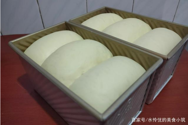 12.三個一組放入吐司盒,在烤箱內發酵,設置38度,放一碗熱水。