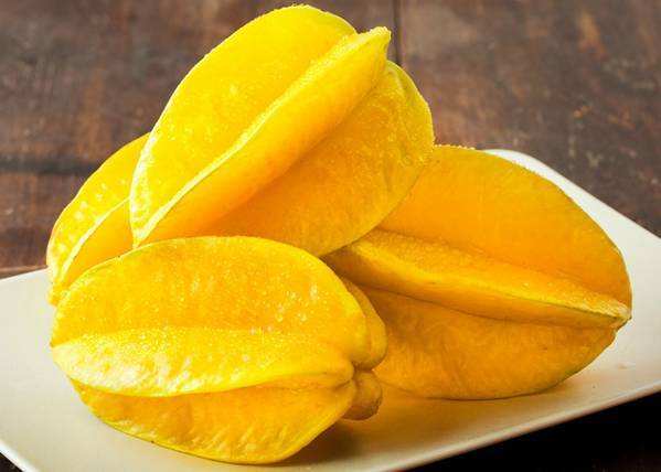 4.清熱利咽 楊桃果實中含有大量的揮發(fā)性成分、胡蘿卜素類化合物、糖類、有機(jī)酸及維生素B、C等,可消除咽喉炎癥及口腔潰瘍,防治風(fēng)火牙痛。 食用方法:楊桃外型美觀、獨特,顏色呈翠綠鵝黃色,皮薄,果肉脆滑、鮮嫩且酸甜可口,里面含有充足的水分。除了可以鮮吃外,部分地區(qū)的人在吃楊桃時還會用一些“獨特”的方法,比如說海南人吃楊桃習(xí)慣粘上少許的鹽和辣椒,這樣吃起來別有一番風(fēng)味,會越吃越上癮;三亞人則常用酸楊桃配鮮魚同煮,其湯既甜中帶酸,又可以去除腥味。楊桃果皮呈蠟質(zhì),光滑鮮艷,爽甜多汁。楊桃性涼,含有多種營養(yǎng)成分,并含有大量的揮發(fā)性成分,帶有一股清香。在茶余酒后吃幾片楊桃,會感到口爽神怡,另有一番風(fēng)味。小貼士:將楊桃搗爛敷面,每次敷面10—15分鐘,這樣有助于消除黑斑及面色的黑色素。