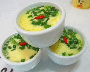 6、蒸好的蛋羹吃的時(shí)候淋上步驟5中的料汁即可。